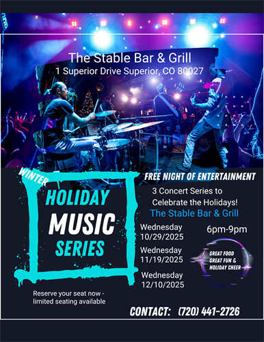 Enjoy a 'Free' evening with a musical gift of this holiday season at The Stable Bar & Grill between 6pm-9pm, starting 11/19/25 . Come Join Us!! Let's kick off "The Holiday Season" With the 2nd Concert  in our Winter Concert Series at The Stables Bar and Grill -Powered by Affordable Party Planner/Digital Goddess Publishers.